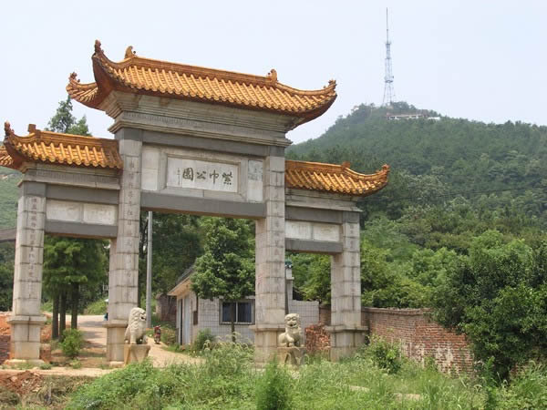 進入牌坊后,沿著水泥盤山公路可達公園景區(qū)