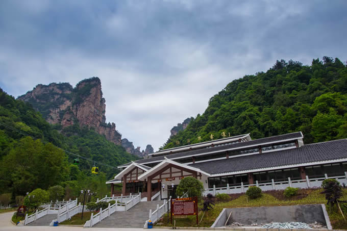 楊家界風光 楊家界索道是世界自然遺產(chǎn)武陵源風景名勝區(qū)繼天子山索道、黃石寨索道后的第三條客運索道,上站位于八里坡游覽線劉家檐,下站位于中湖鄉(xiāng)野溪鋪村。該索道采用法國,斔鞯涝O備,是世界頂級雙回路循環(huán)式配置八人車廂式索道,全長1876米,上下站垂直高差517米,線路支架14個,最高運行速度6m/s,最大運力為2300人/小時,單程運行時間5.2分鐘,是目前國際最先進的客運索道。