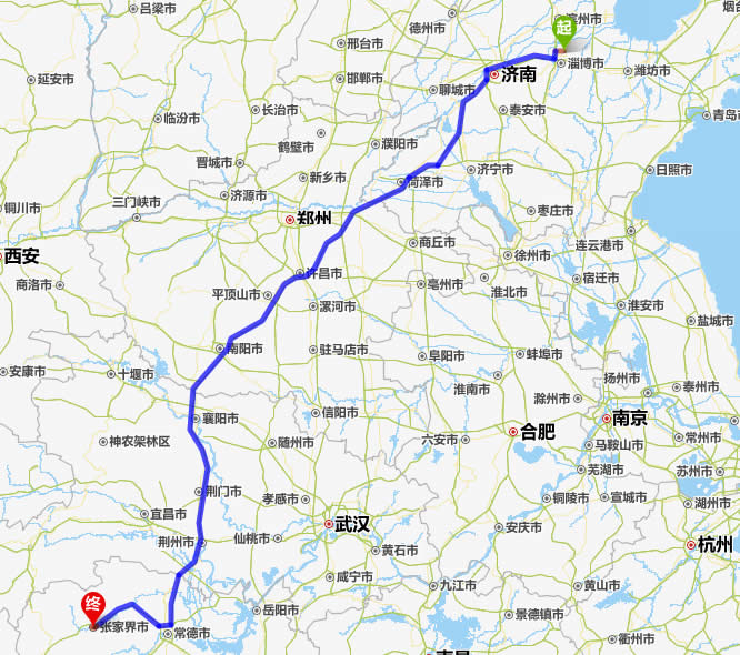 桓臺(tái)縣去張家界自駕車自助游線路圖全程高速):
