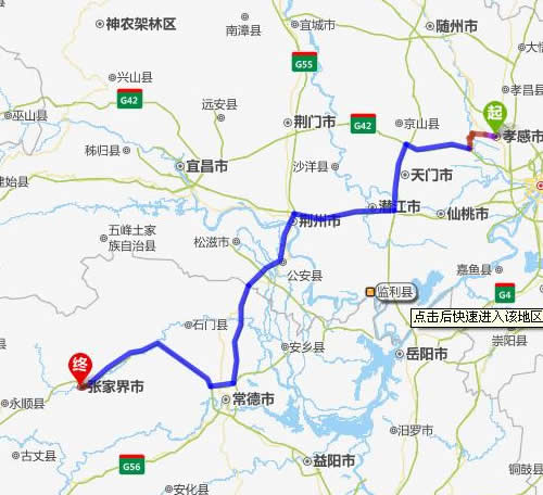 現(xiàn)在位置:張家界旅行社->交通指南->自駕車路線 -> 孝感到張家界旅游自駕車線路-孝感去張家界自己開車要多長時間,有多少公里
