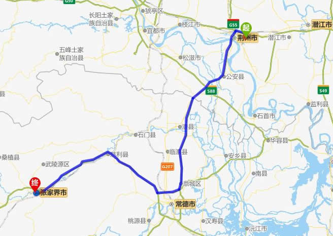 左右,沿途經過沙市——公安縣——澧縣——常德(也可以走國道經澧縣、石門縣)——慈利——張家界。