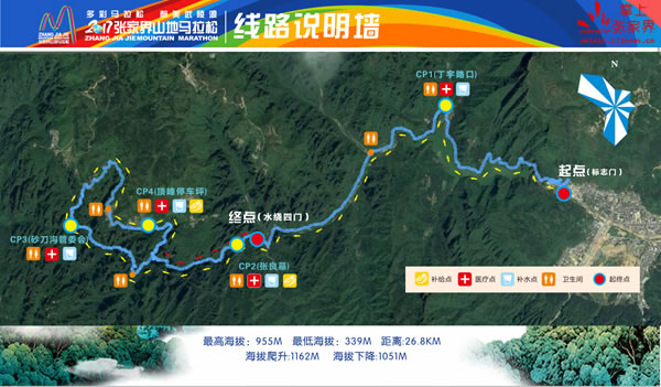 據(jù)了解,本屆山地馬拉松活動分為迷你馬(全程11.8千米)和半馬(全程26.8千米),參與報(bào)名612人,其中法國、加拿大、埃塞爾比亞等國外選手25人。5日早上9:00,選手們將從張家界國家森林公園吳家峪門票站出發(fā),途徑十里畫廊、水繞四門金鞭溪、迷魂臺等核心景點(diǎn),最高海拔近千米,累計(jì)爬升1162米,累計(jì)下降1051米,可謂山地馬拉松的絕佳路線。